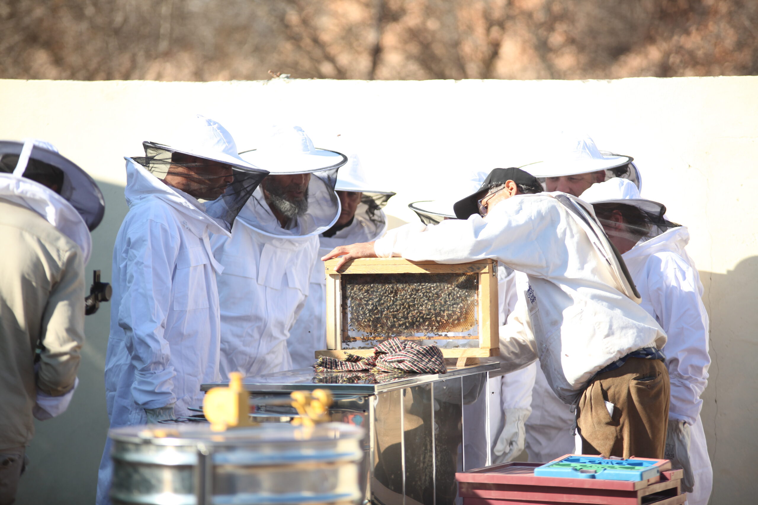 Session éducative pour les adultes et les enfants où les participants découvrent la ruche, le rôle essentiel des abeilles pour la biodiversité et la santé et déguste le miel de nos apiculteurs du Village Solaire autour d’un thé